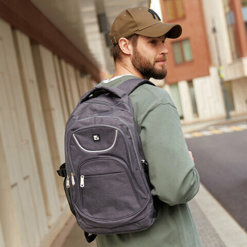 Рюкзак / портфель мужской, школьный, подростковый для учебы, спорта, городской Brauberg универсальный, 3 отделения, светло-серый, 46х31х18 см, 270762