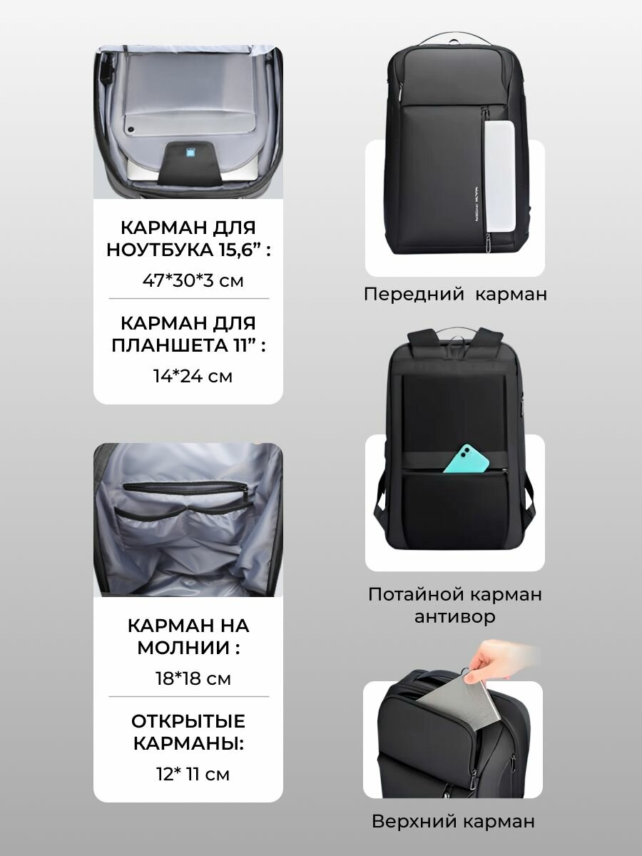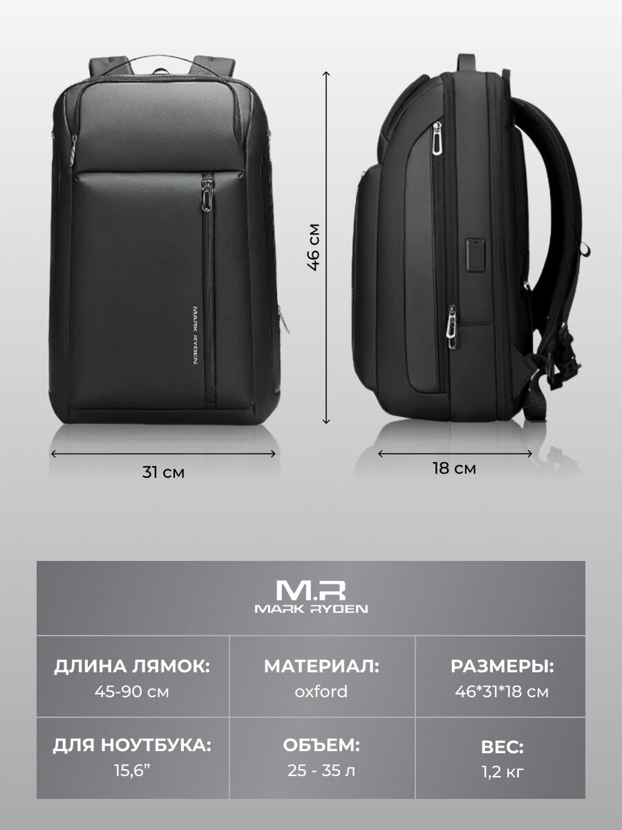 Рюкзак мужской городской Mark Ryden G1_MR9808_00, для ноутбука 15,6", увеличение объема 25-35л, дорожный ручная кладь интересное: