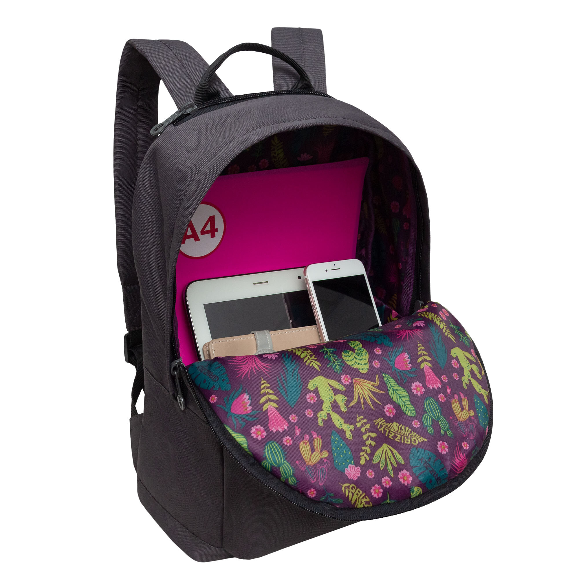 Городской рюкзак GRIZZLY RXL-423-5 серый, 26х38х12