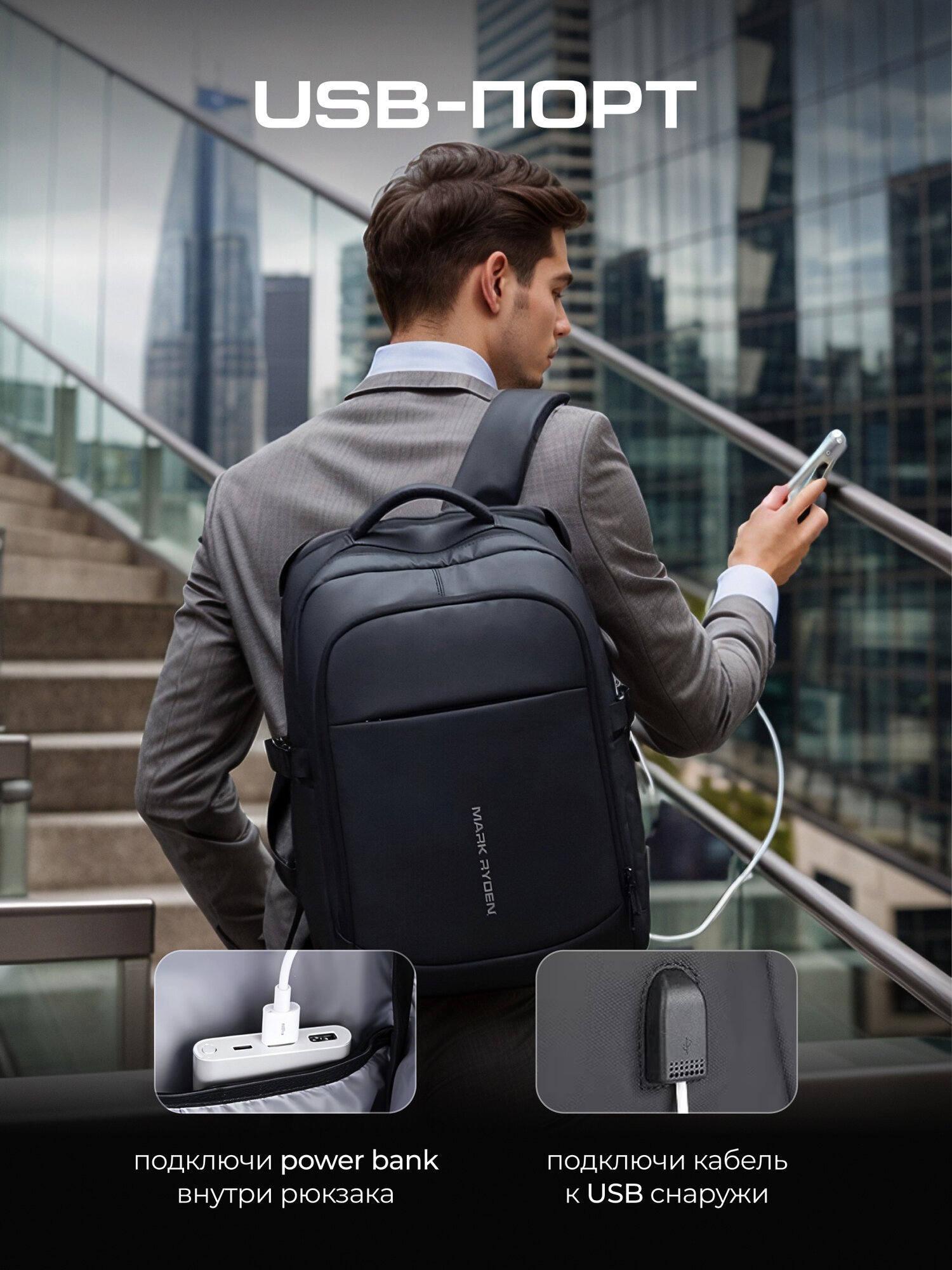 Рюкзак мужской городской Mark Ryden MR9191DY_SJ для ноутбука 15,6", объем 20л, повседневный, дорожный, для учебы интересное: