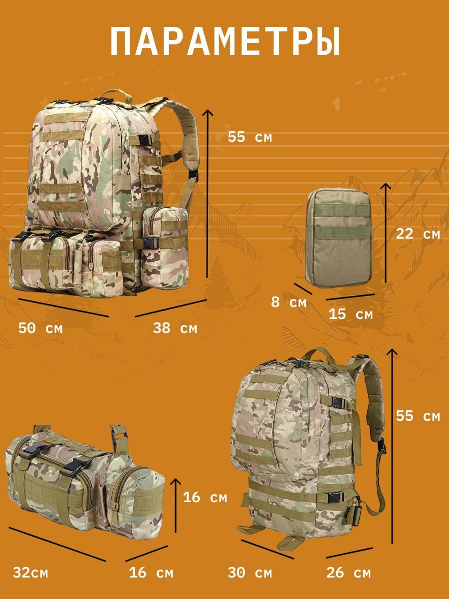Ниже Вы можете прочитать отзывы на Рюкзак тактический военный с 3 подсумками Мультикам, ознакомится с подробными характеристиками, посмотреть интересные обзоры и фотографии на Рюкзак тактический военный с 3 подсумками Мультикам.