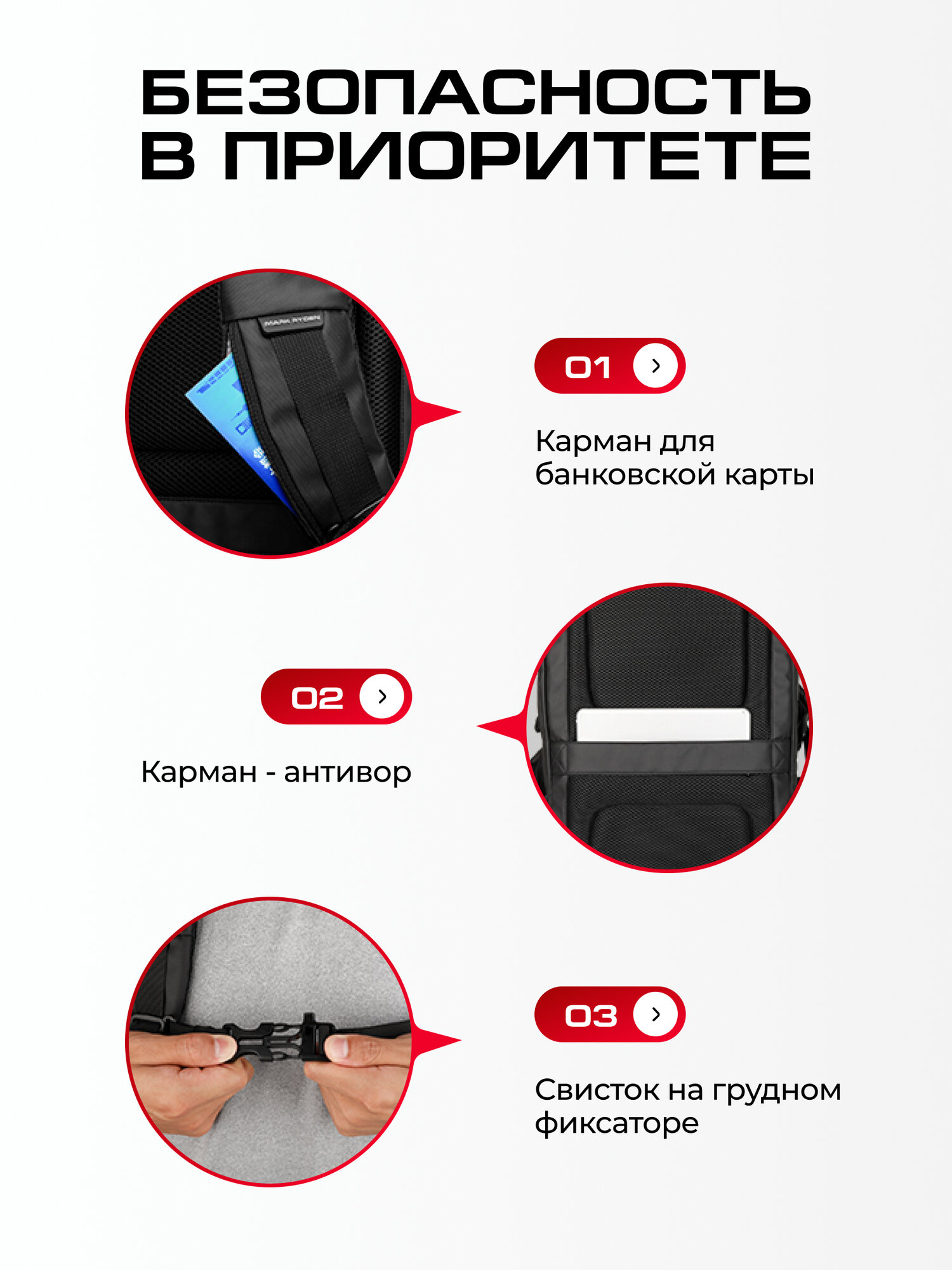 Рюкзак городской дорожный мужской Mark Ryden вместительный 30л, для ноутбука 17.3", непромокаемый, с USB зарядкой черный