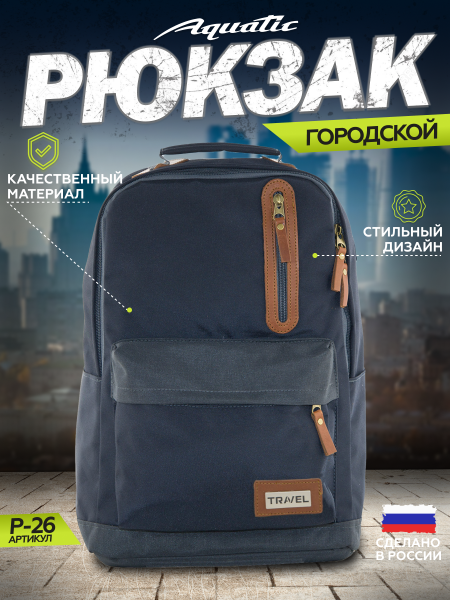Купить Акватик Рюкзак мужской городской с отделением для ноутбука 42х35х14см.(цвет: синий)