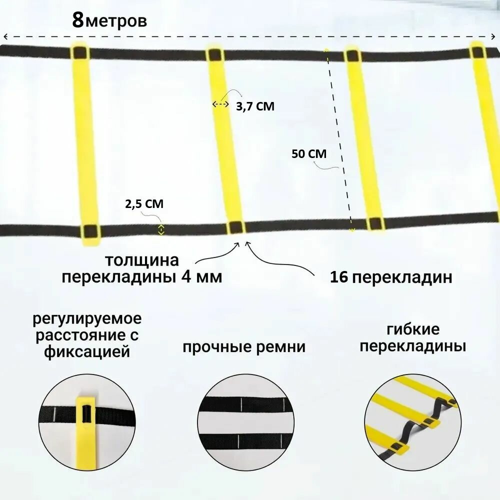 Ниже Вы можете прочитать отзывы на Координационная лестница 8 метров 16 перекладин, ознакомится с подробными характеристиками, посмотреть интересные обзоры и фотографии на Координационная лестница 8 метров 16 перекладин.