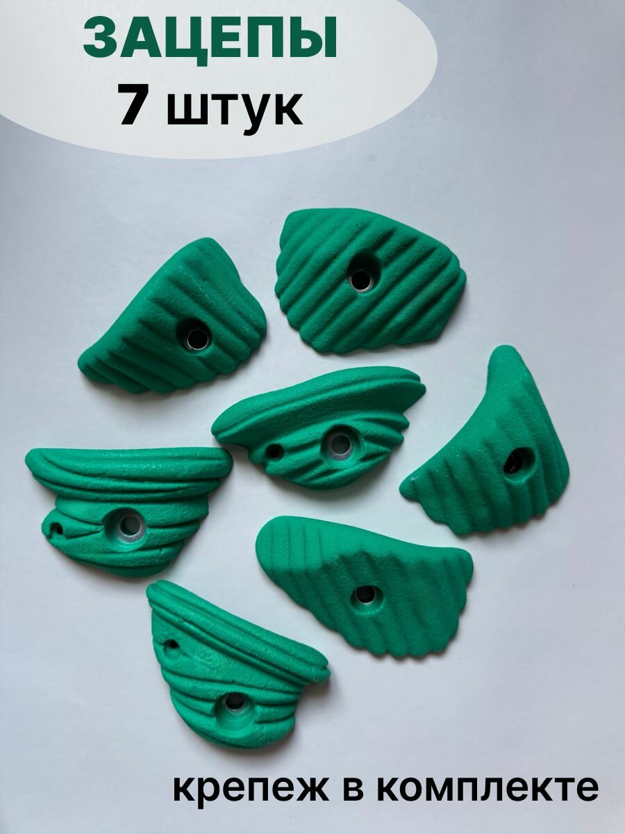 Купить Зацепы для скалодрома,7 штук с крепежом, универсальные, зеленые