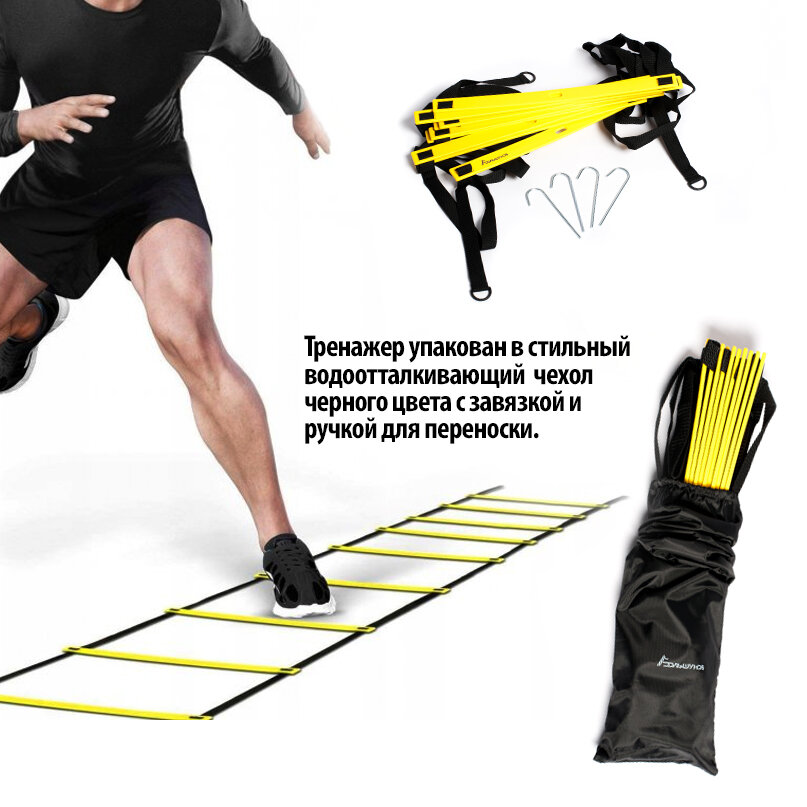 Координационная лестница Александр Большунов, размеры 42см х 5м, желтая интересное: