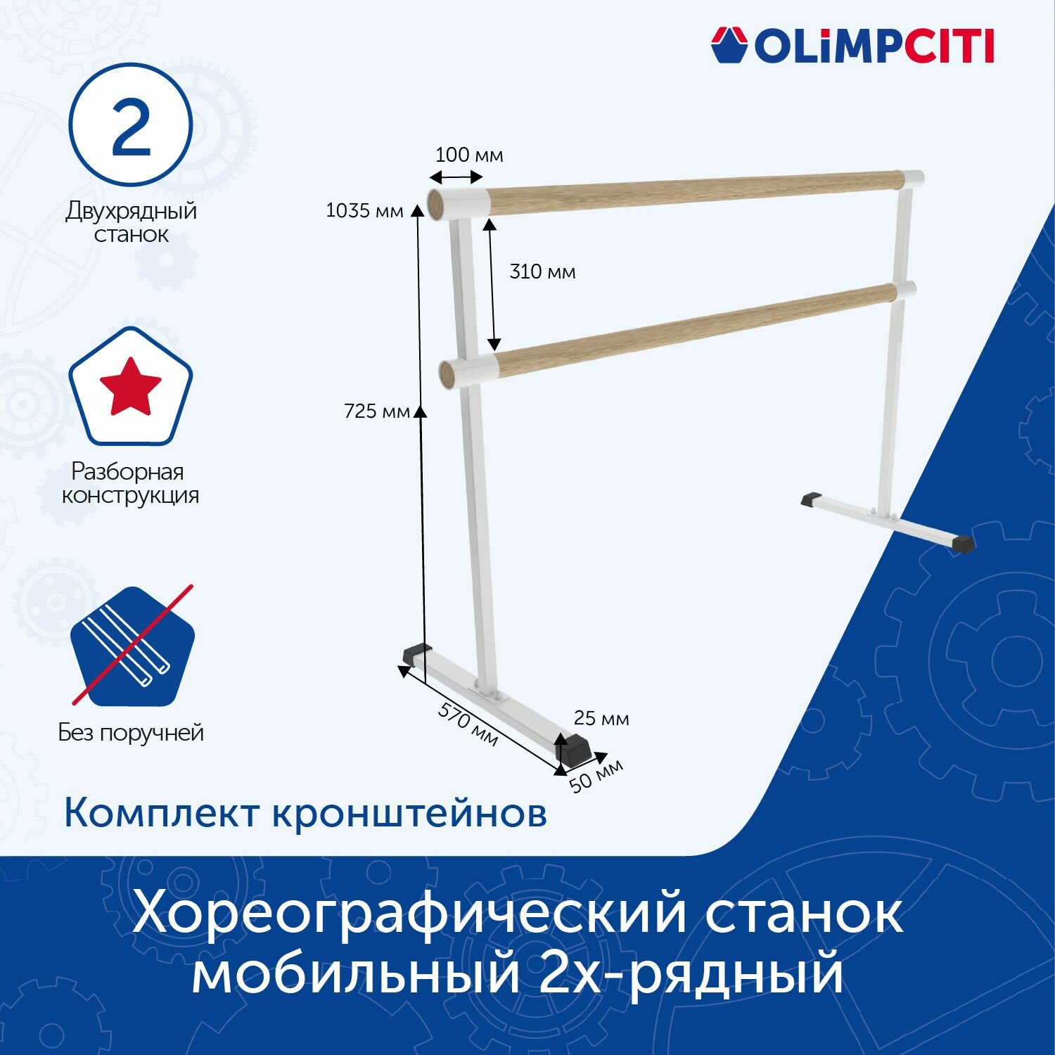 Хореографический станок мобильный 2х-рядный разборный (комплект кронштейнов) White интересное: