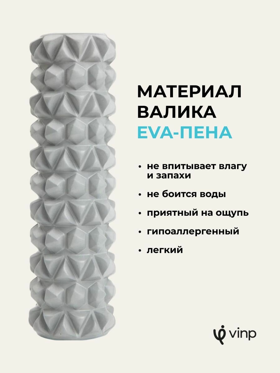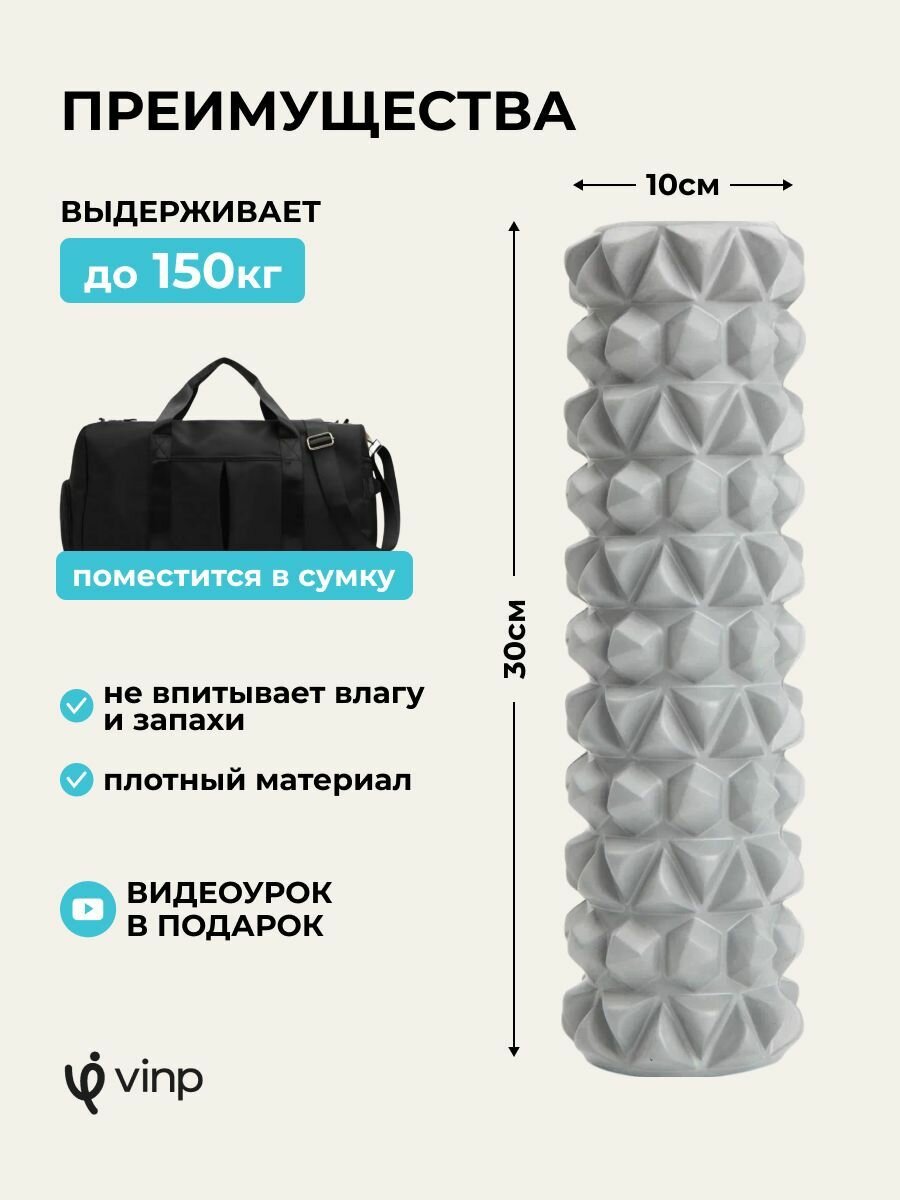 Массажный ролик VINP 30х10 см, МФР валик для спины и тела, средней жесткости, в комплекте мячик для массажа интересное:
