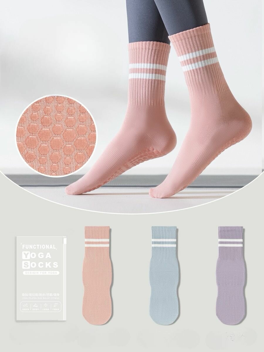 Носки для йоги и пилатеса с полосками, антискользящая подошва, хлопок 90%