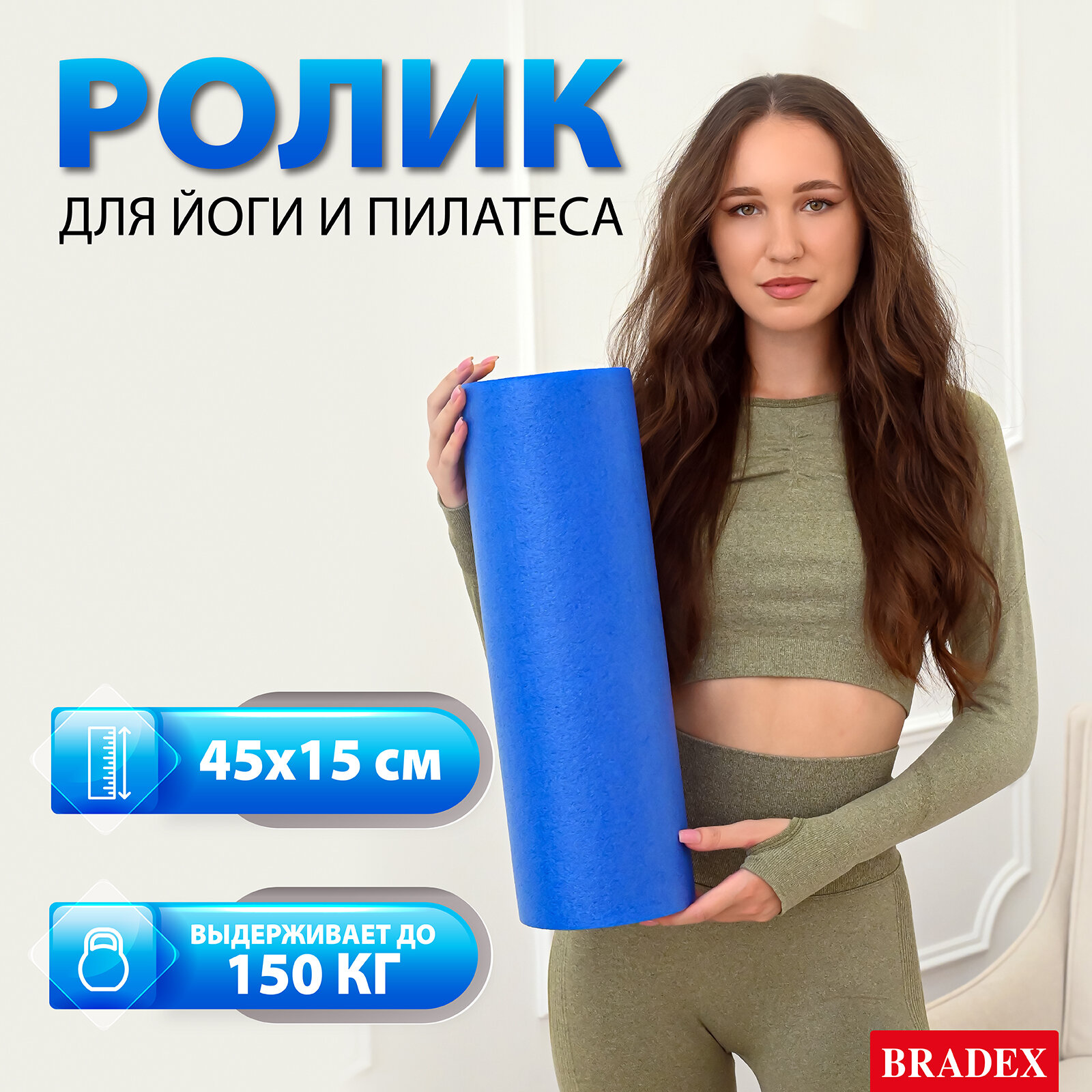 Купить Валик для спины спортивный BRADEX, ролик для фитнеса, йоги, пилатеса, мфр ролл, 15*45 см, голубой
