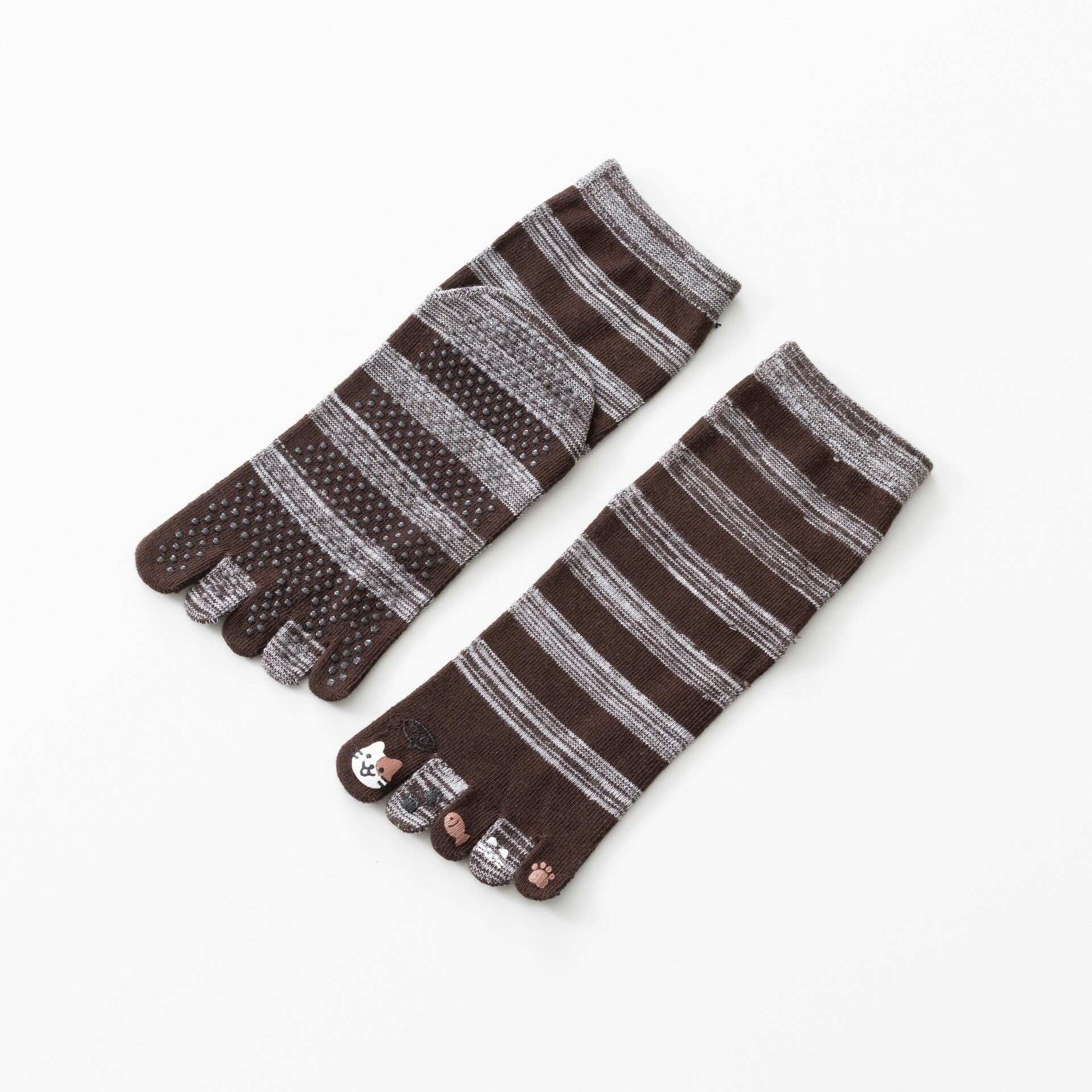 Купить Носки с пальцами противоскользящие для йоги милые коты в полоску коричневые
