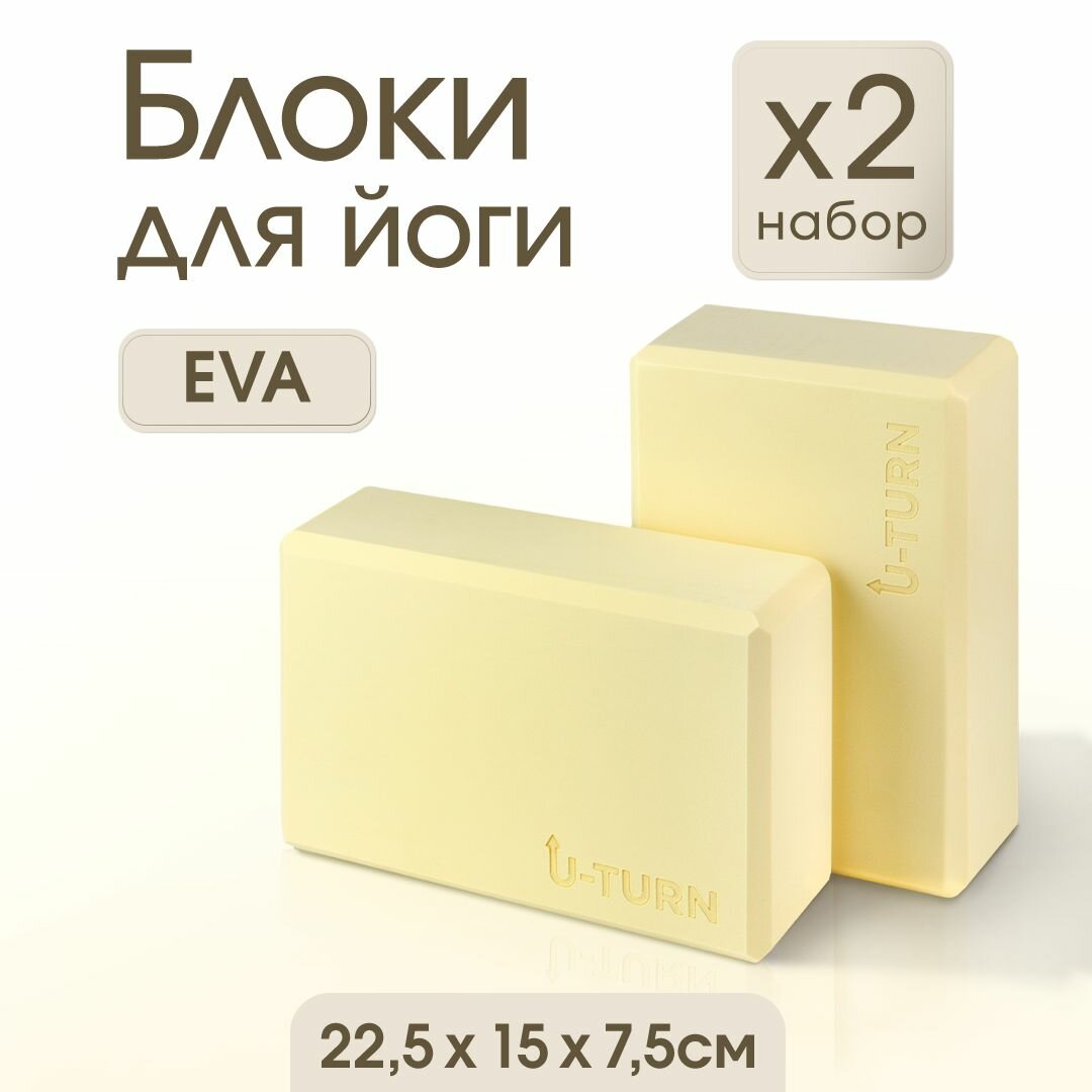 Купить Блоки для йоги 22.5х15х7.5 см, комплект из 2 штук, бежевый. Спортивный инвентарь