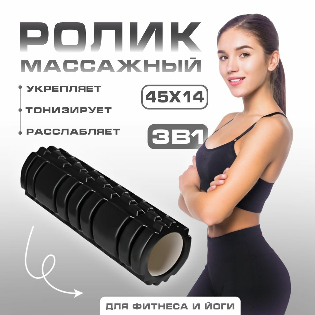 МФР ролик массажный, спортивный валик для спины, для фитнеса, йоги, пилатеса, черный интересное:
