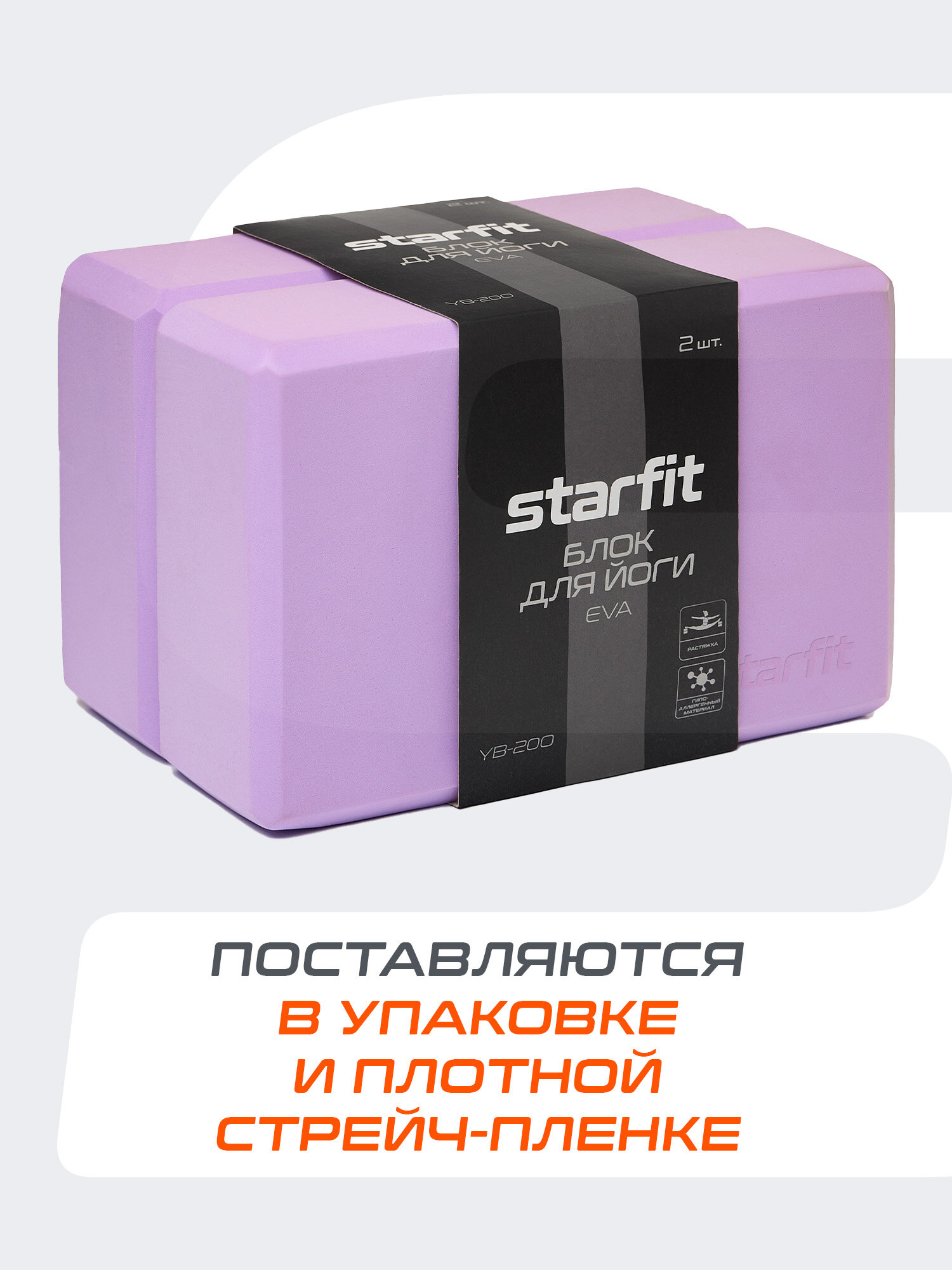 Купить Блок для йоги STARFIT YB-200 EVA, 8 см, 115 гр, 22,5х15 см, цвет светло-фиолетовый, 2 шт