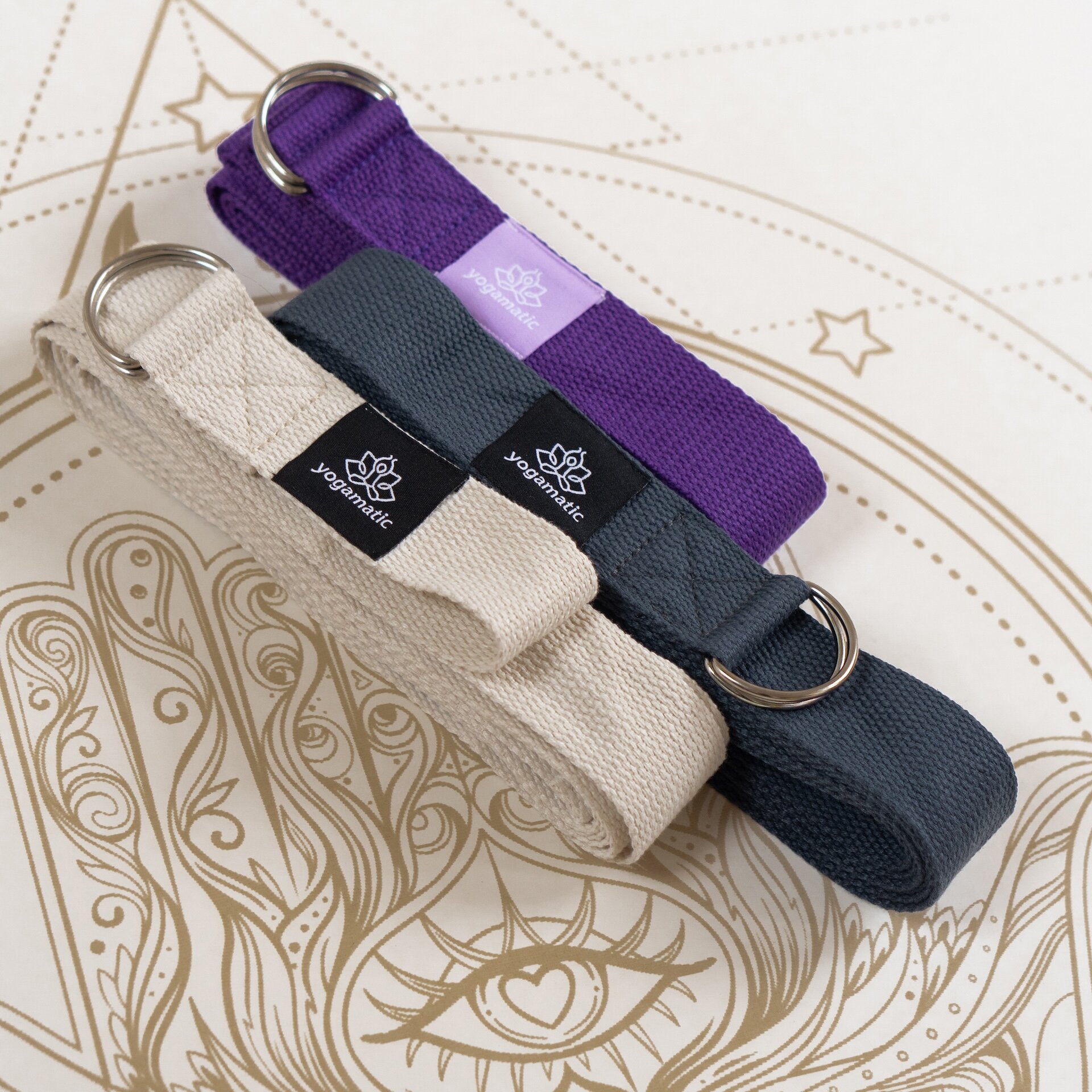 Купить Ремень тренировочный для йоги растяжки фитнеса хлопковый Арт Йогаматик, фиолетовый