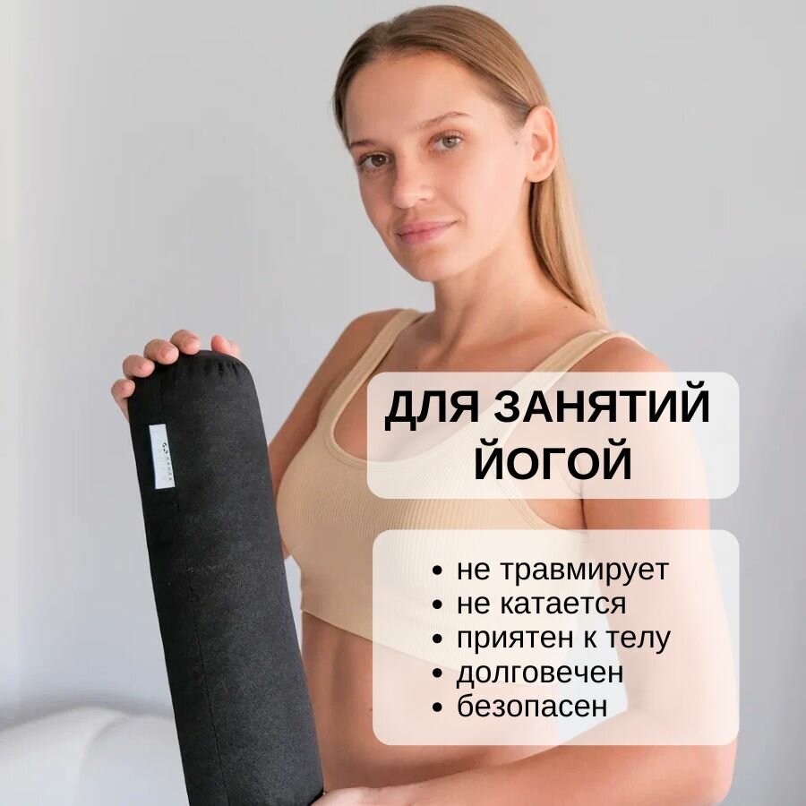 Валик для спины массажный с лузгой гречихи из рогожки серый, 35х10 см
