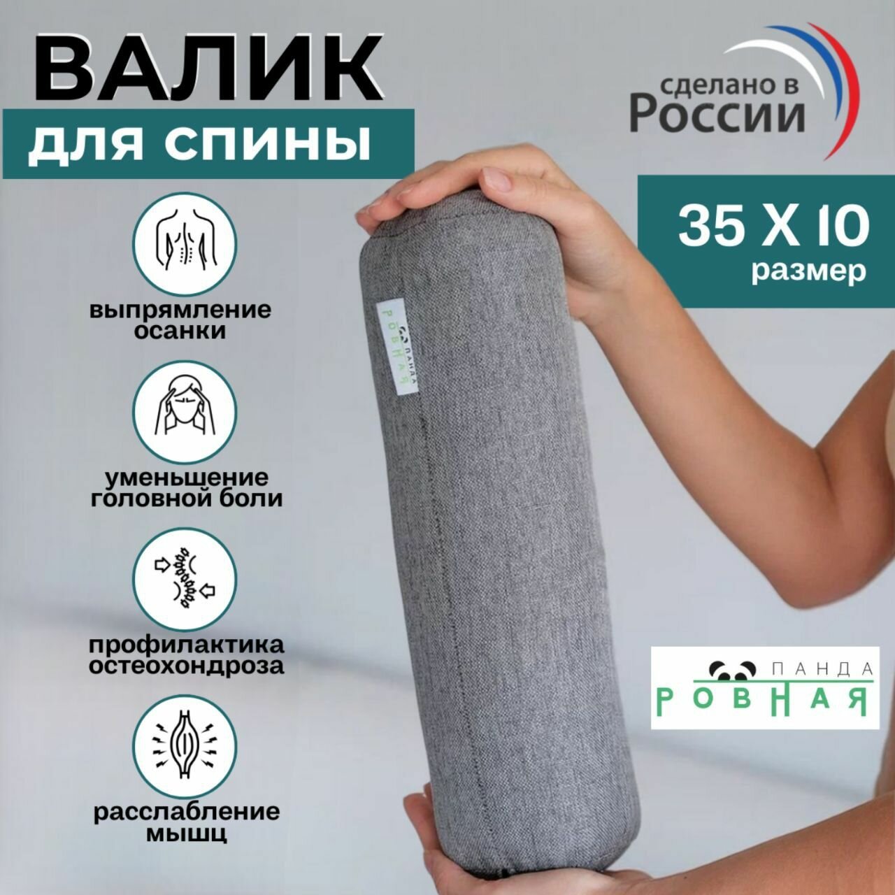 Валик для спины РОВНАЯ ПАНДА PREMIUM GRETA, текстиль, 35x10см