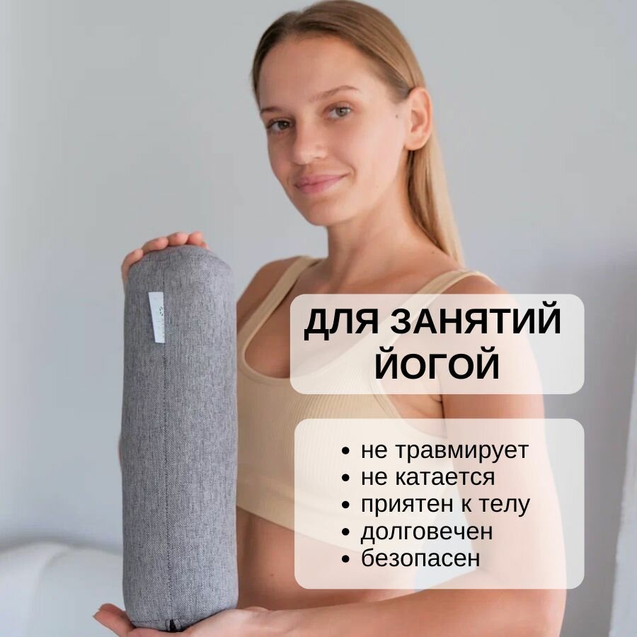 Валик для спины массажный с лузгой гречихи из рогожки серый, 35х10 см интересное: