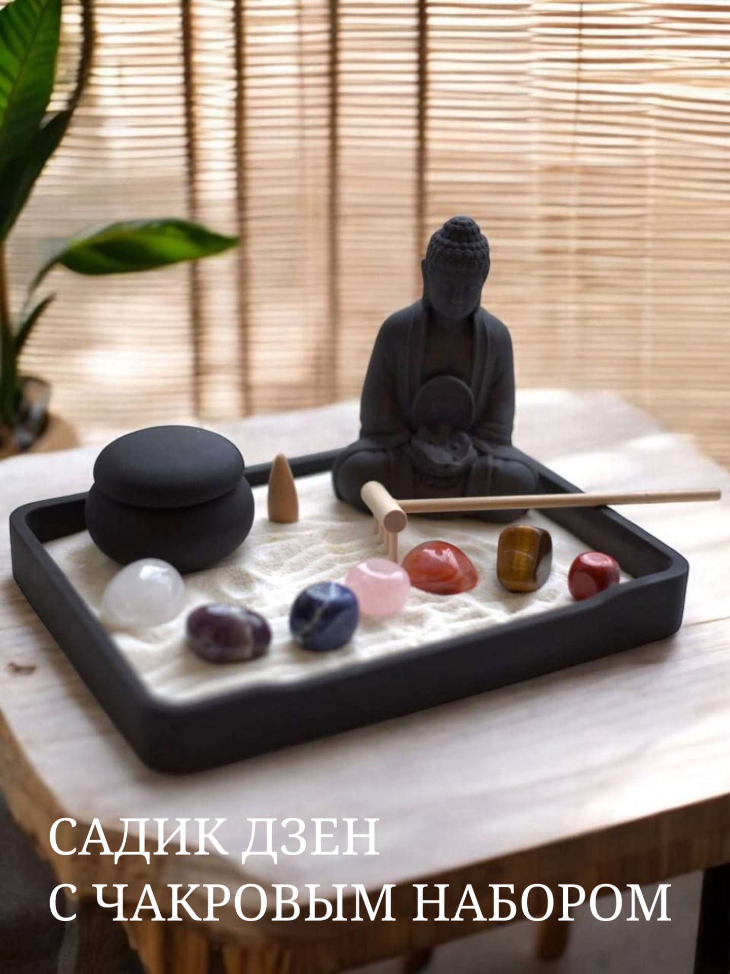 Настольный японский садик с чакровым набором Дзен 22х16х2,5 , садик для медитации, сад камней интересное:
