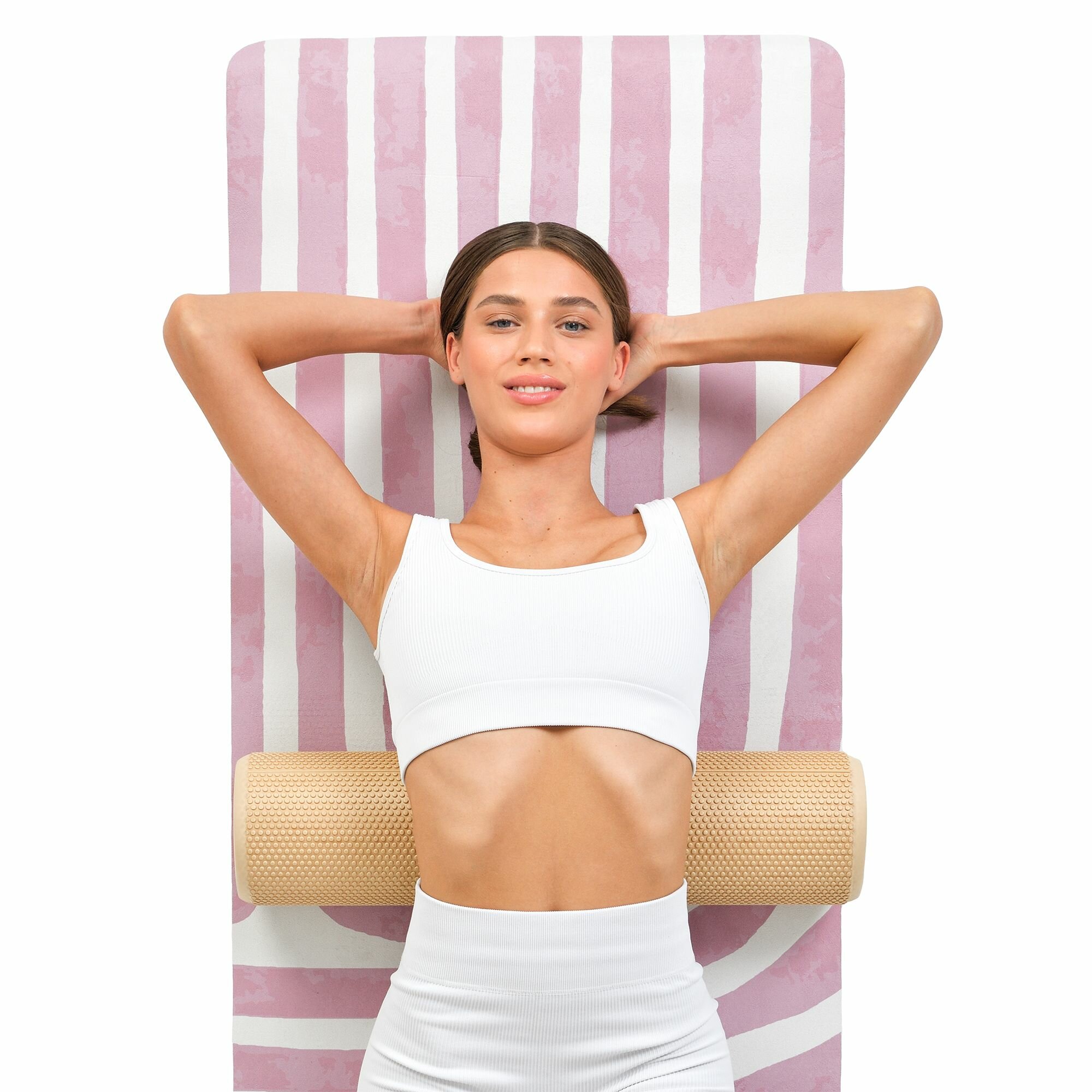 Купить Массажный валик Kama, для спины, бежевый, цилиндрический, 60х15 см