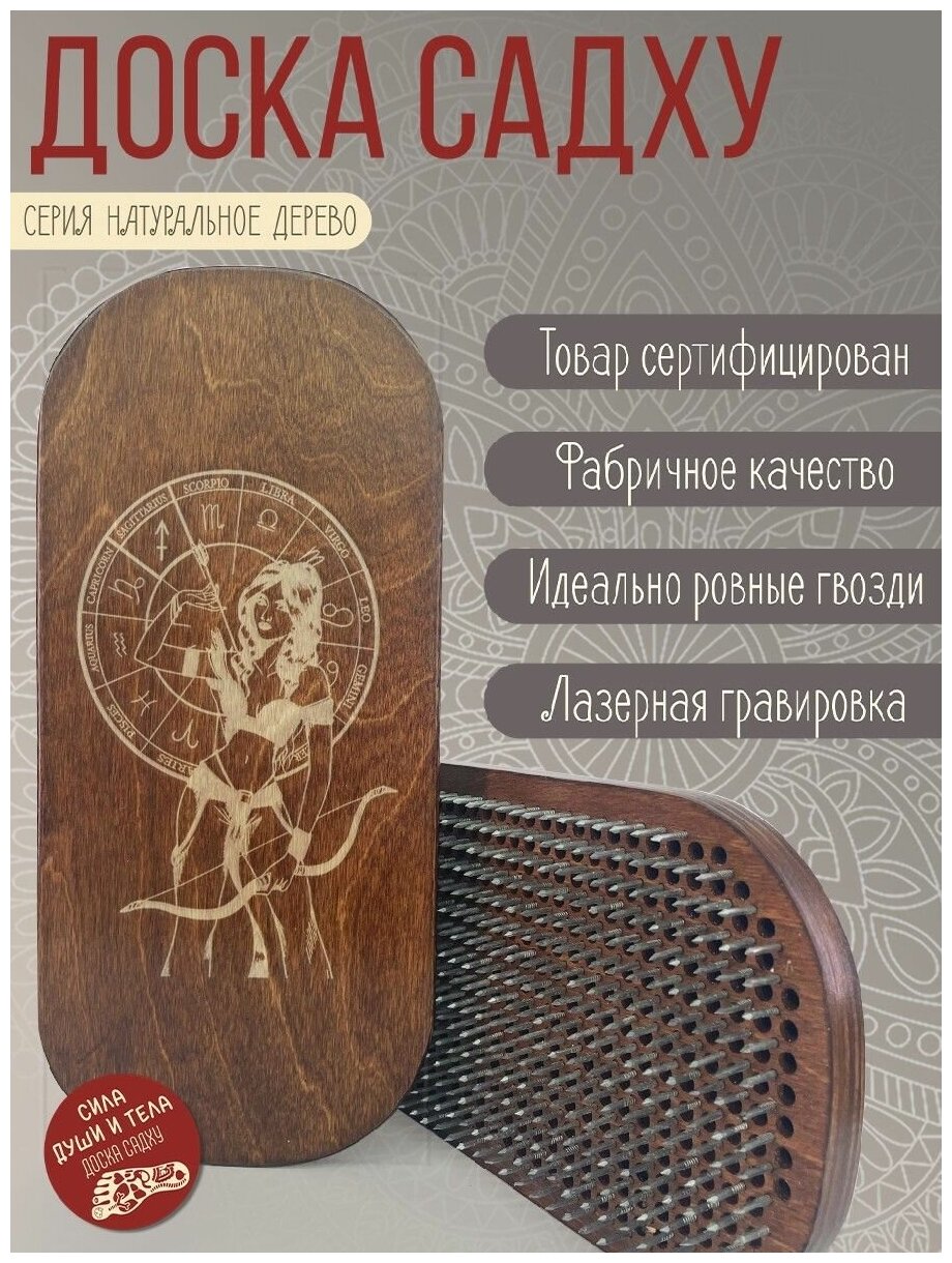 Доска с гвоздями Садху для Йоги / Овал / знаки зодиака / стрелец - 1528 / Венге интересное: