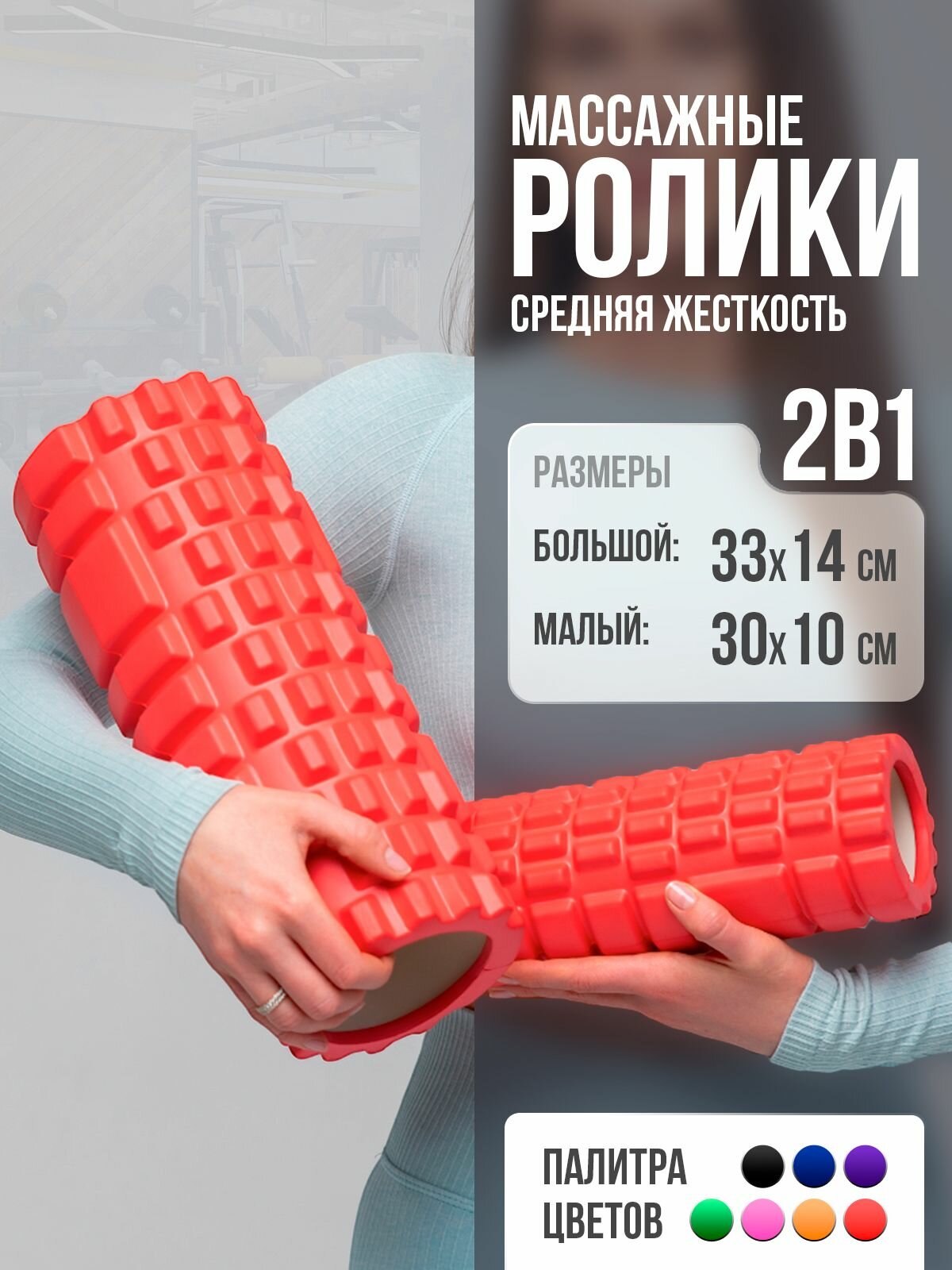Валик для спины SportBelt средней жесткости , 33х14 см , цвет красный , мфр ролл , ролик массажный