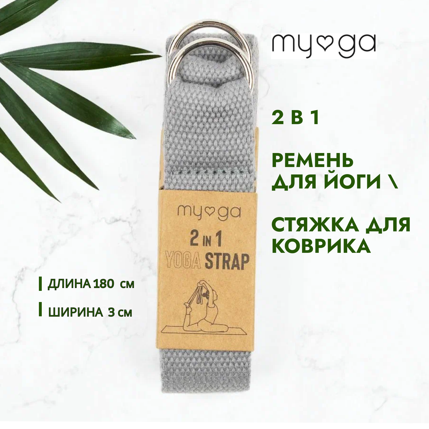Купить 2 в 1 Ремень для йоги/ Стяжка для коврика MYGA , длина 180 см, серый