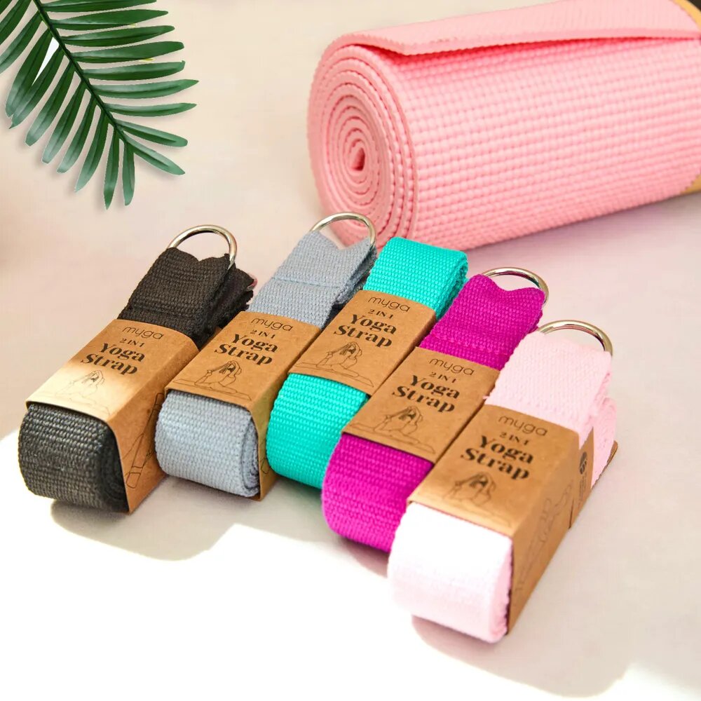 2 в 1 Ремень для йоги/ Стяжка для коврика MYGA , длина 180 см, чёрный
