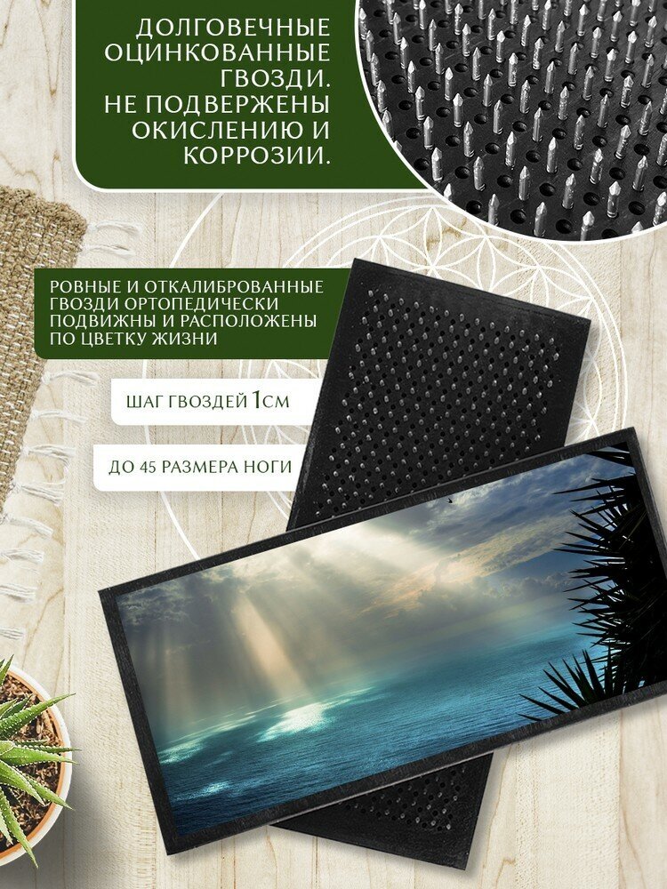Доска Садху с гвоздями для Йоги с УФ печатью море океан - 3030 шаг 10мм интересное: