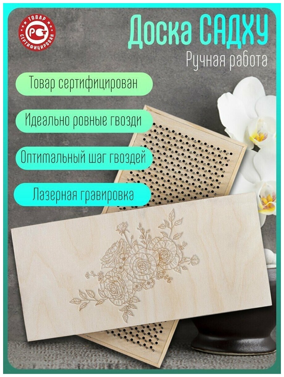Купить Доска Садху / Доска с гвоздями / Доска для Йоги / растения цветы - 1254, светлая