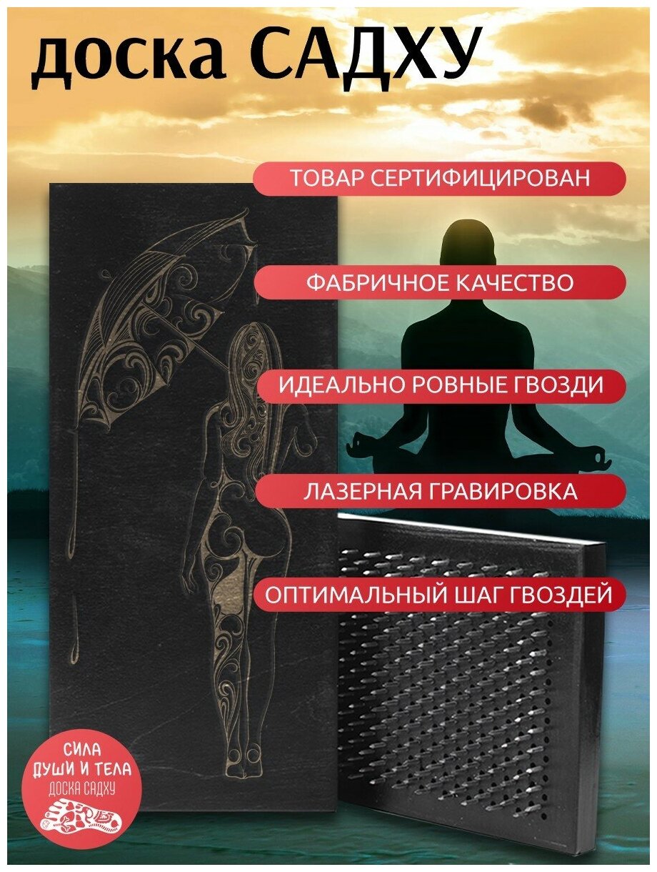 Доска Садху / Доска с гвоздями / Доска для Йоги / девушка с зонтом - 313 / шаг 10мм интересное: