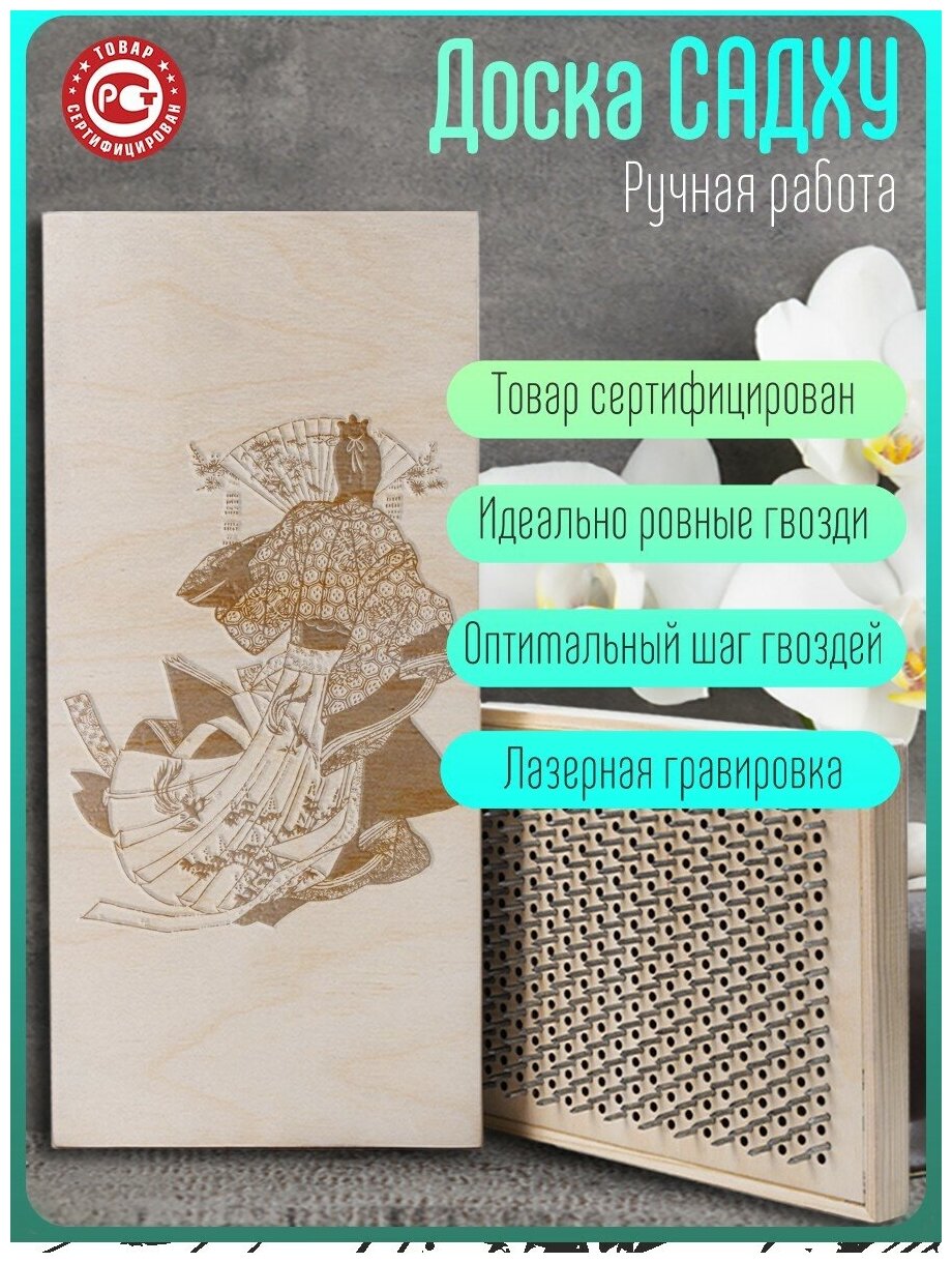 Доска Садху / Доска с гвоздями / Доска для Йоги / китай девушка гейша - 1070, светлая интересное: