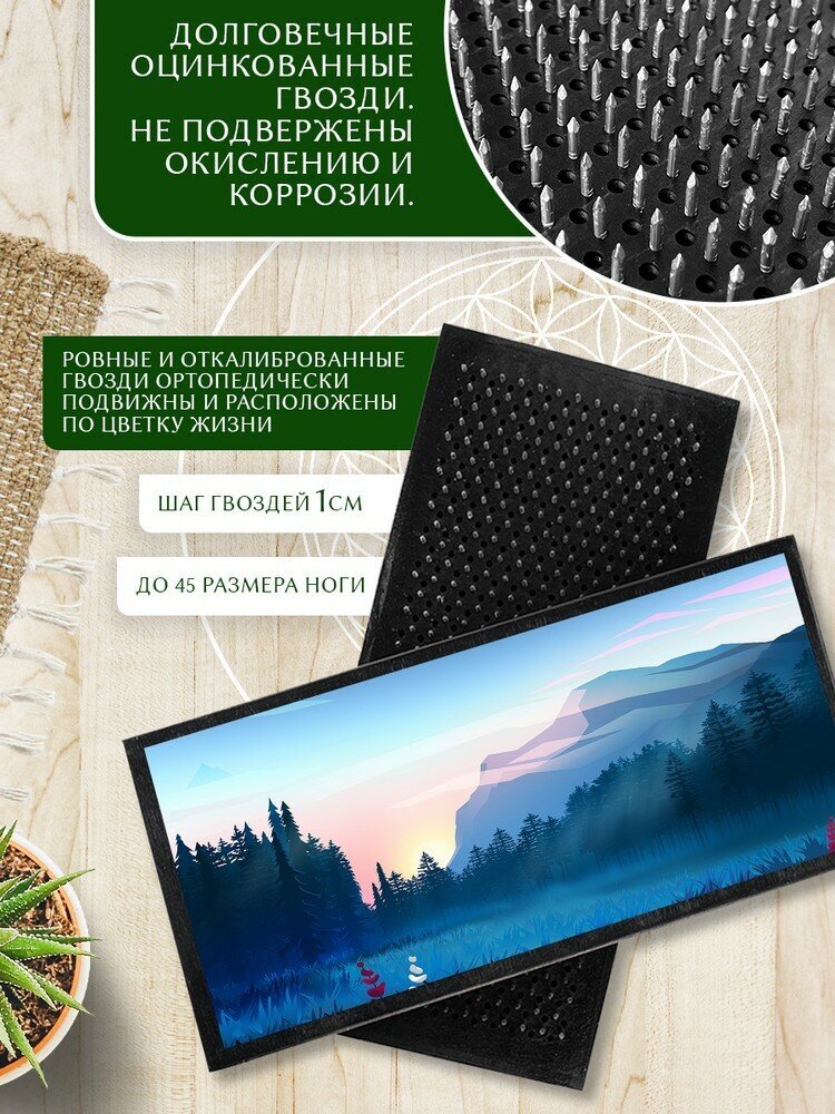Доска Садху с гвоздями для Йоги с УФ печатью Пейзаж - 2025 шаг 10мм