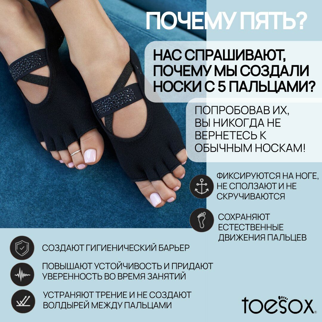 Нескользящие носки с пальцами для йоги ToeSox Low Rise Tec, цвет черный, размер S интересное: