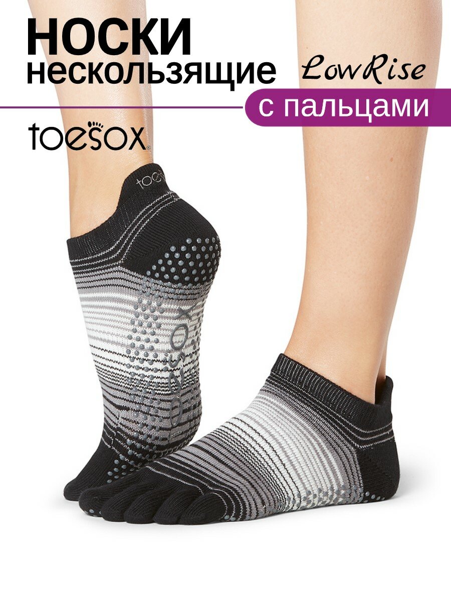 Нескользящие носки с пальцами для йоги ToeSox Low Rise, цвет Помехи, размер S интересное: