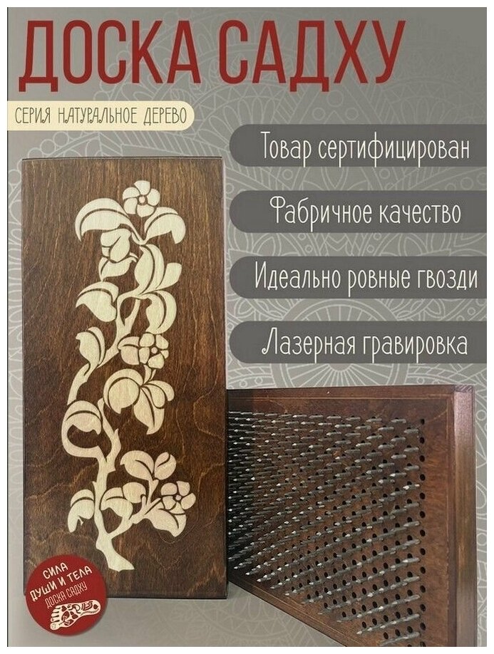Доска садху с динамическими гвоздями, шаг 10мм, цвет Венге модель растения цветы - 1302 интересное:
