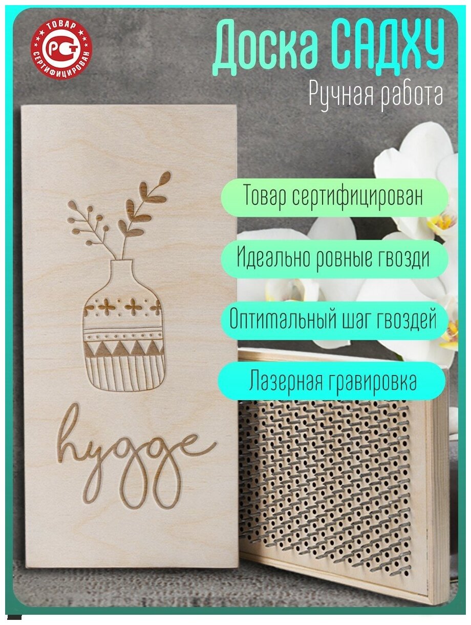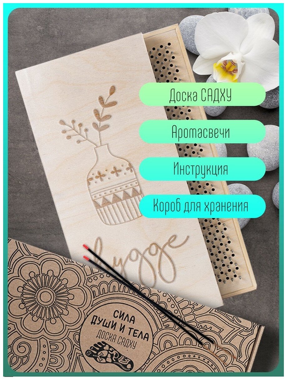 Доска Садху / Доска с гвоздями / Доска для Йоги / растения надпись - 1395, светлая интересное: