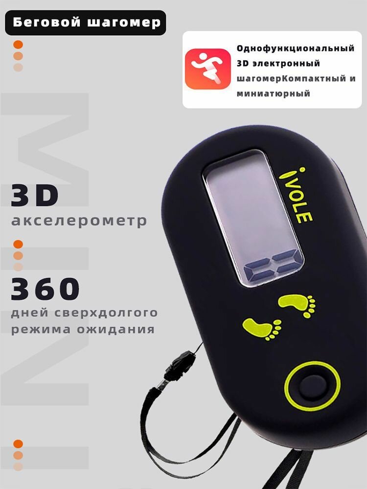 Купить Шагомер, ABS пластик, влагостойкий, черный, матовое покрытие