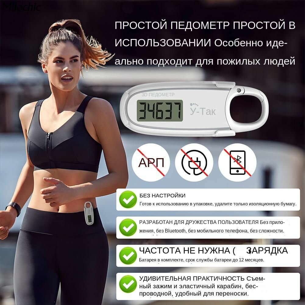 Шагомер с 3D-датчиком, точный подсчет, большой ЖК-дисплей, простой и удобен в использовании, простой и понятный в использовании интересное: