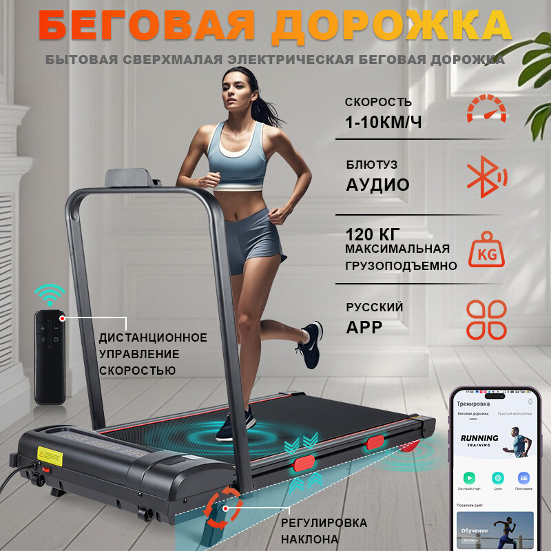 Беговая дорожка, РК ЛОГ 201, мобильным APP, Российское приложение, скорость 1-10 км/ч, максимальная нагрузка 120 кг интересное: