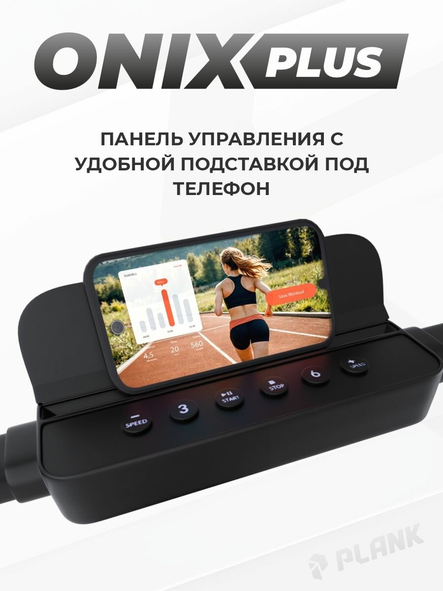 Ультратонкая беговая дорожка PLANK ONIX Plus (cо складывающимися стойками) интересное: