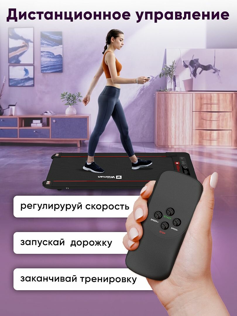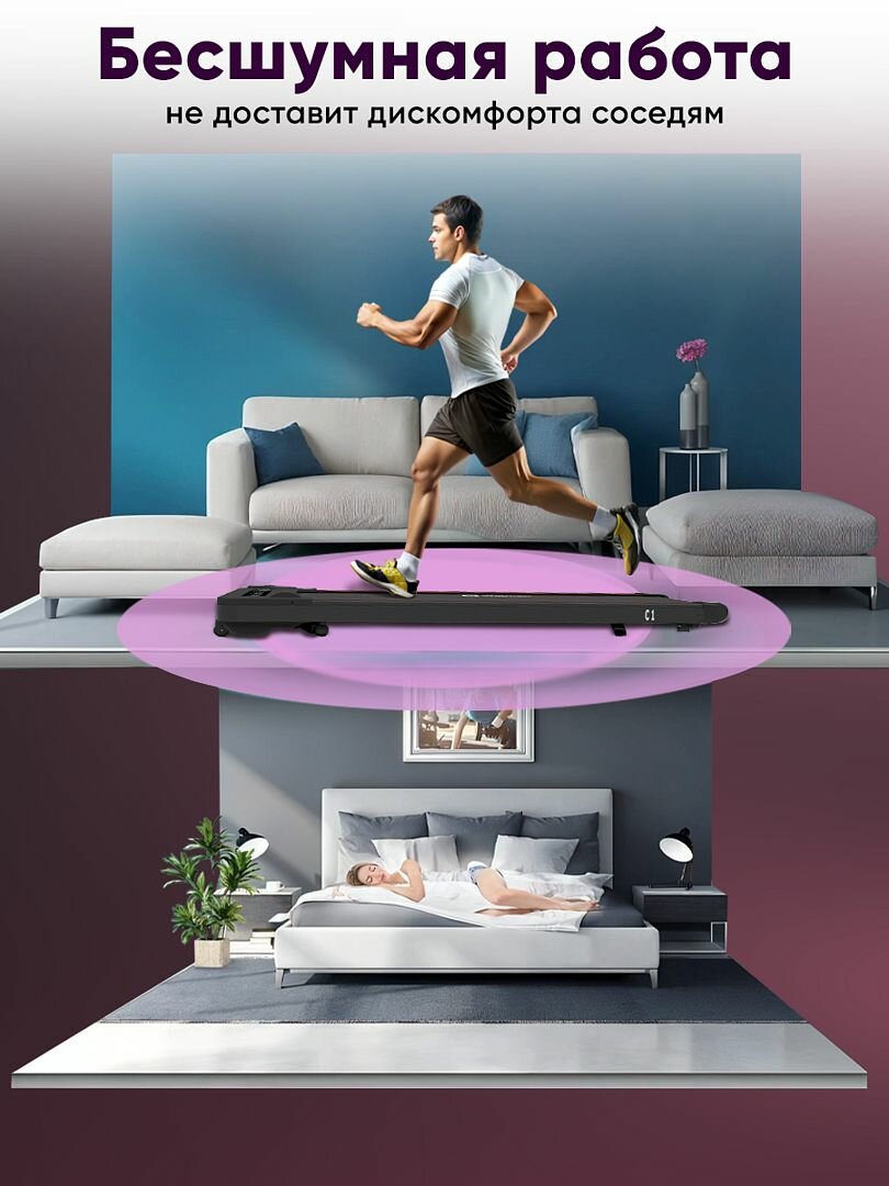 Беговая дорожка электрическая C1 для дома, нагрузка до 100 кг, без поручней, максимальная скорость 8,5 км/ч, черный интересное: