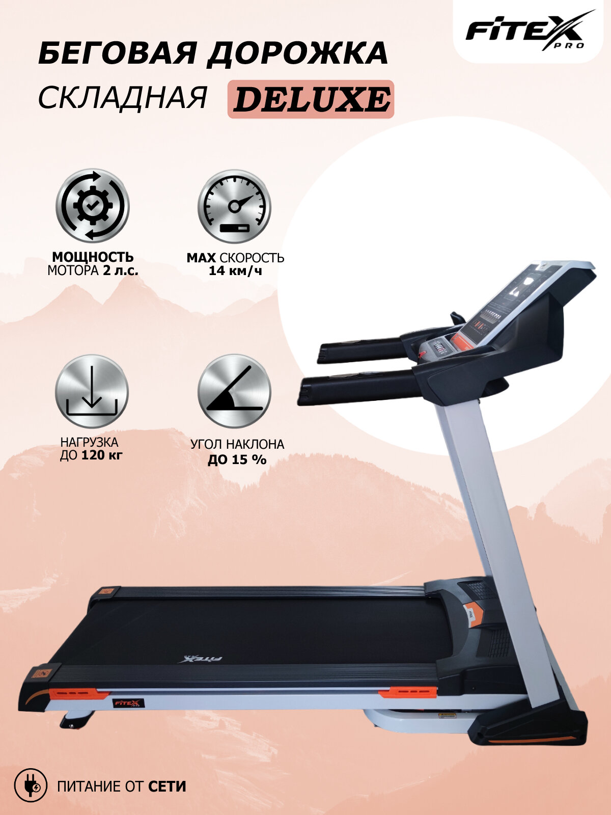 Купить Беговая дорожка Fitex Pro DELUXE, электрическая, для дома, складная