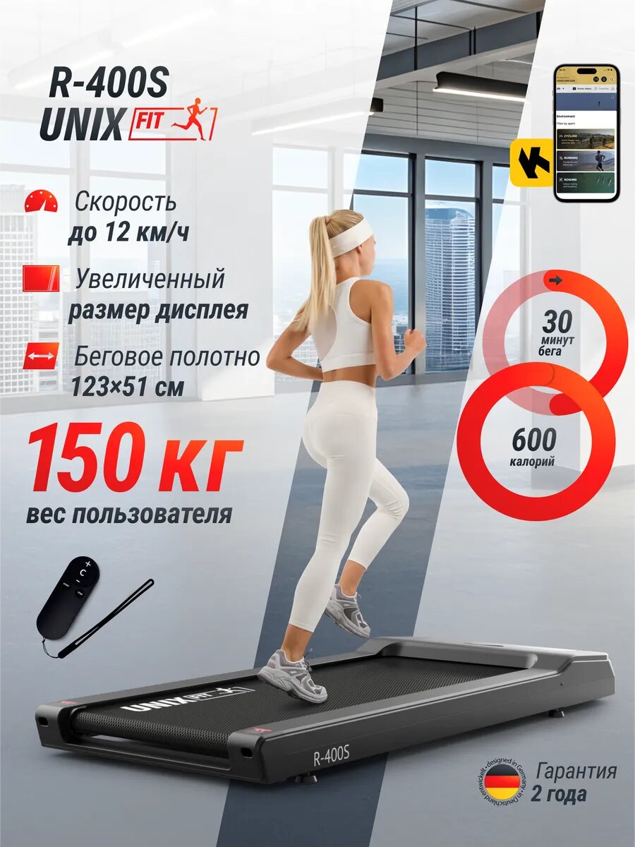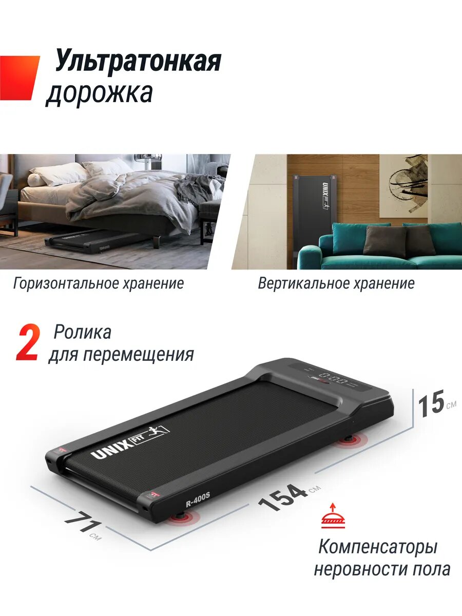 Беговая дорожка UNIX Fit R-400S электрическая, 154 х 71 х 15 см интересное: