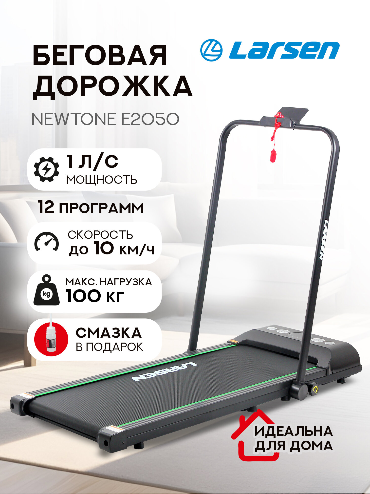 Электрическая беговая дорожка Larsen Newtone E2050, складная, до 100кг, пульт ДУ интересное: