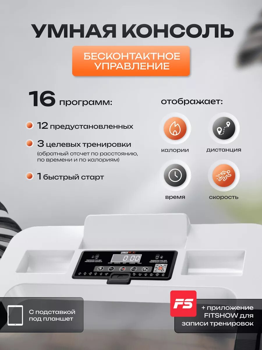 Купить Беговая дорожка Unixfit ST 440N, электрическая, складная, белая, с подставкой под планшет