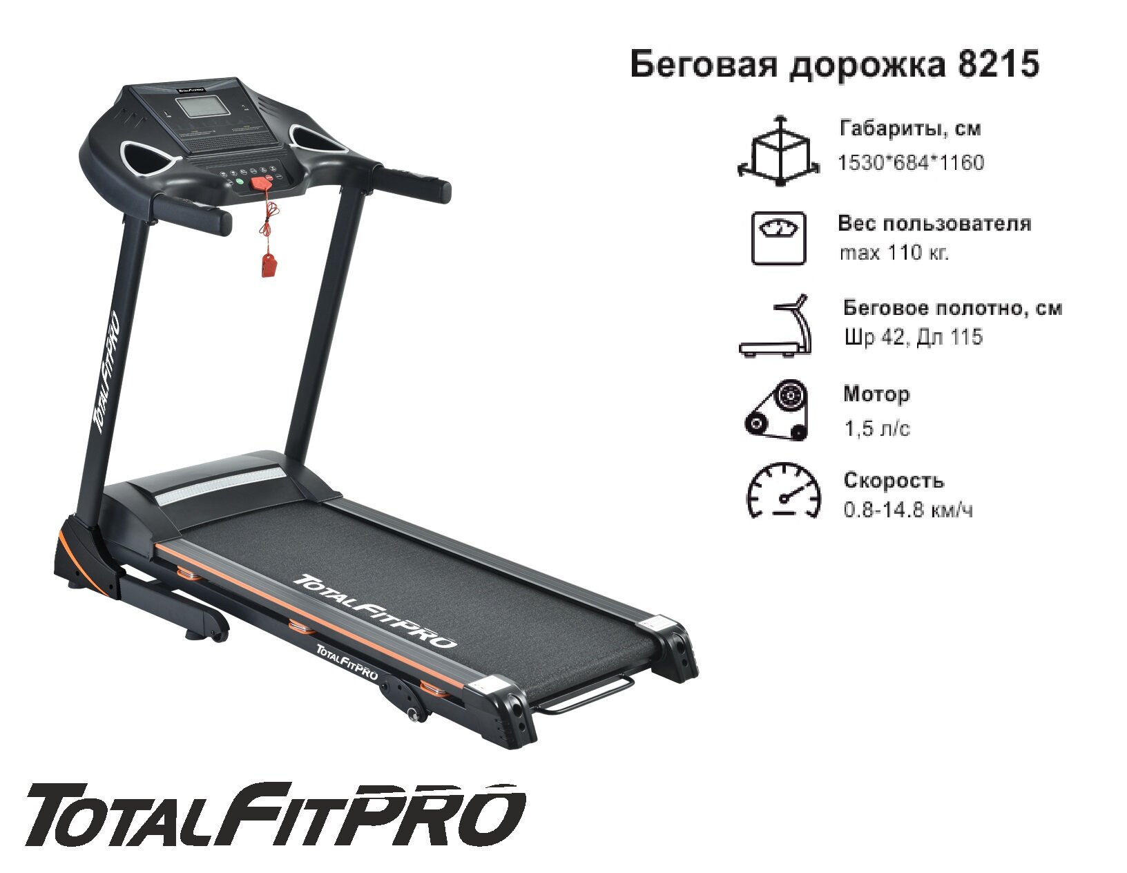 Купить Дорожка беговая TotalFitPRO 8215 электрическая, складная, для дома