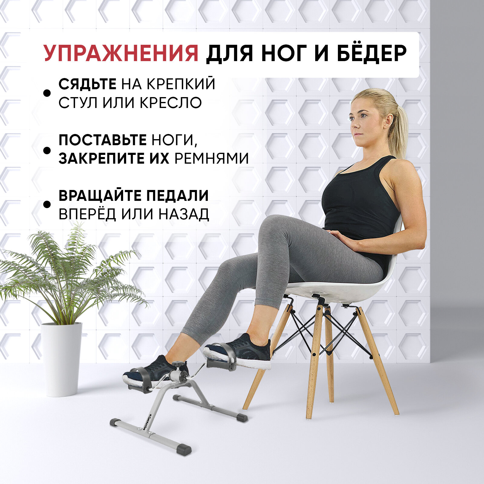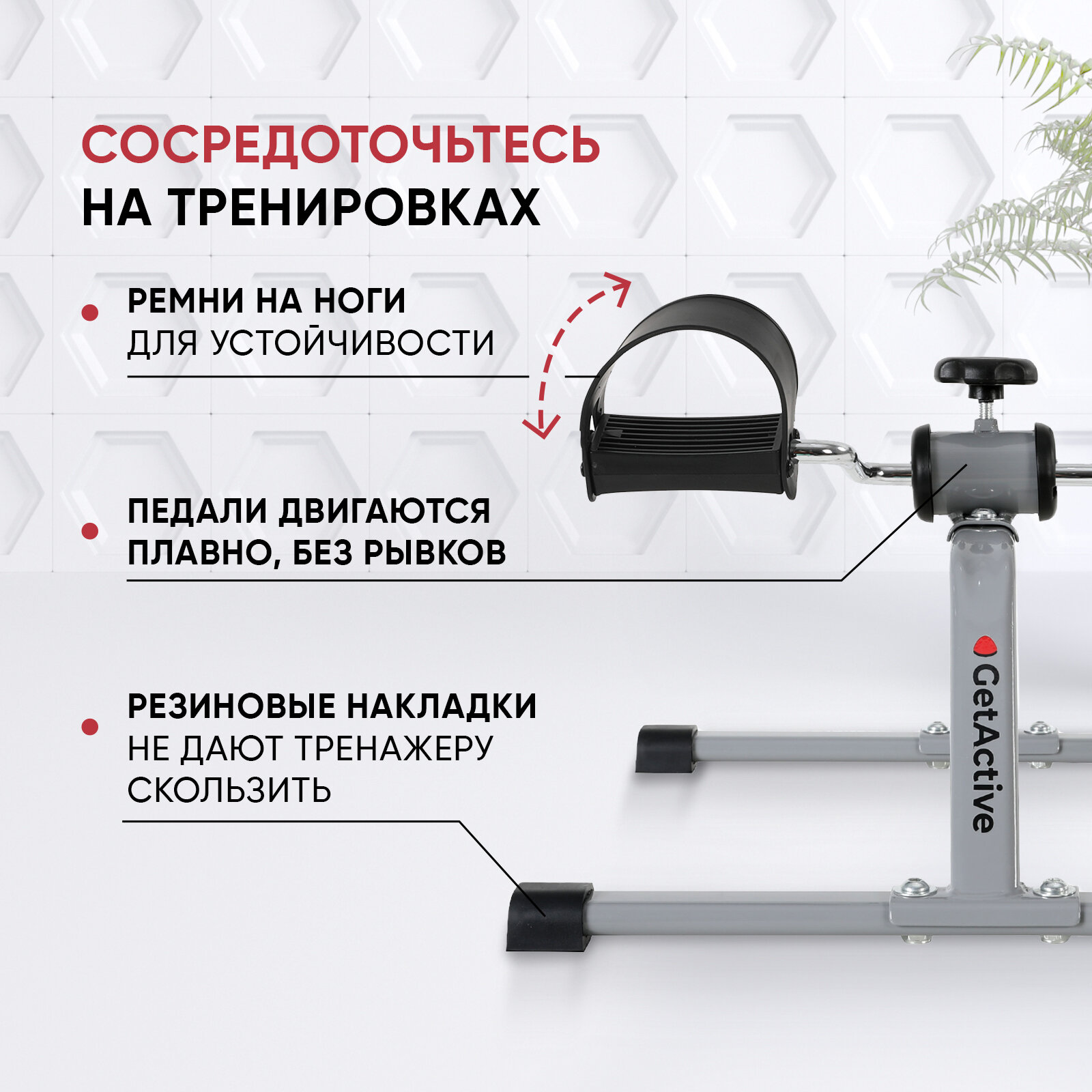 Купить Компактный мини велотренажер для рук и ног домашний GetActive ES-8102-G серый. Педальный горизонтальный тренажер для дома