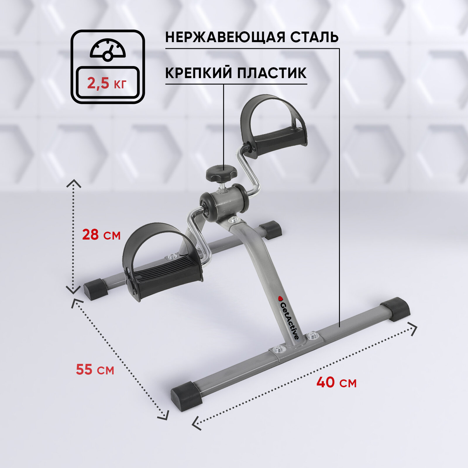 Компактный мини велотренажер для рук и ног домашний GetActive ES-8102-G серый. Педальный горизонтальный тренажер для дома интересное: