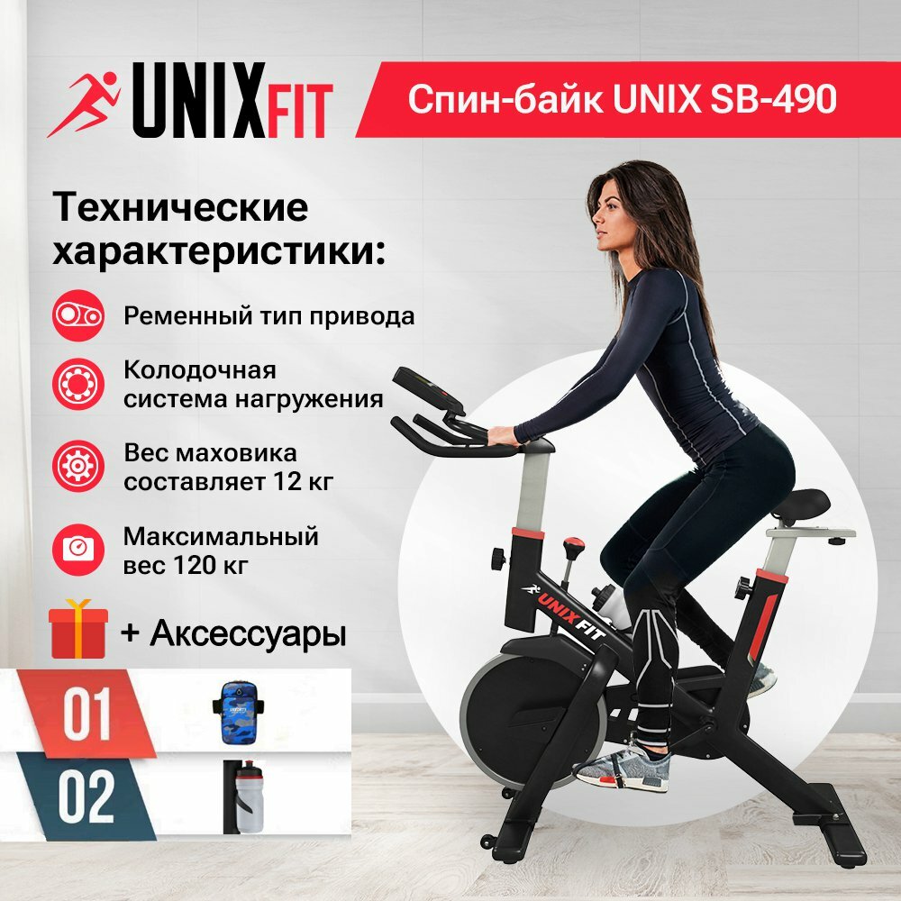 Велотренажер Спин-байк UNIX Fit SB-490 + аксессуары для фитнеса интересное: